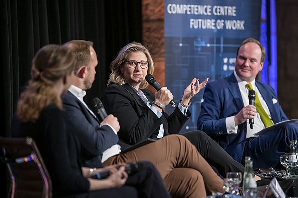 We ended the day by discussing how workers can be made fit for dealing with AI. Together with Stefan Olsson (Deputy Director General DG EMPL), Kristin Keveloh (Senior Lead Manager, Public Policy & Economic Graph, LinkedIn) and Marcus Merheim (Founder hooman EMPLOYER MARKETING, Executive Board Future World of Work at German Association for the Digital Economy) we debated, among other things, how the training needs of workers in Europe can be identified and how different actors can work together on this issue.
