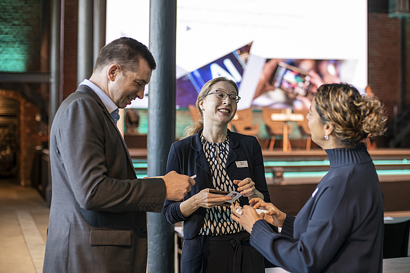Within four panels our experts discussed the various aspects of AI at the workplace. We started the day together with Prof. Dr. Ing. Verena Nitsch (Director Institute of Industrial Engineering and Ergonomics) Aída Ponce Del Castillo (Senior Researcher ETUI), Stefan Gran (Senior Advisor ETUC) Nick Woischneck (Zukunftszentrum KI NRW, IG Metall NRW) and the question whether AI is more of a curse or a blessing. Various uses of AI at the workplace were presented as well as the challenges and opportunities AI holds for the European workforce, but also for companies.