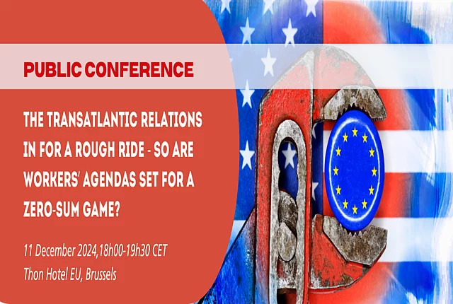 Event The transatlantic relations in for a rough ride – so are workers’ agendas set for a zero-sum game? 11.12.2024 Conference on 11 December 2024 in Brussels discussed prospects of an industrial agenda for the EU and US following the US election. AGENDA On the 11th of December 2024, FES Just Climate and FES Future of Work organised a joint conference in Brussels, capturing a range of topics crucial for upcoming years - the importance of the transatlantic relationship and safeguarding the worker’s rights in the challenging economic era of competition and productivity. Europe’s future competitiveness and global leadership will depend on its ability to excel in clean technologies and digital industries. As China intensifies its challenge to industrialized nations, Europe is focused on preserving its position, though the pressure on business hubs, jobs, and technological innovation is already evident. The looming possibility of a second Trump term further complicates the situation, with the threat of trade wars and geo-economic instability. In this context, Europe must safeguard its interests and navigate the complex dynamics between China and the United States to secure its long-term prosperity. On the one hand, Knut Dethlefsen, emphasized the European Union's critical role in upholding democratic principles on a global scale, by exploring the profound long-term consequences of Donald Trump’s election as the 47th President of the United States. Trump’s leadership reflects a deeply divided American society, as his disruptive approach taps into public frustrations but risks exacerbating social divisions. Moreover, his victory highlights a decades-long decline in trust toward institutions, exposing systemic shortcomings in addressing inequality and widespread disillusionment. On the global stage, this shift signals a more transactional U.S. foreign policy, posing challenges to multilateral cooperation and pressing Europe and its allies to maintain unity. On the other hand, Claudia Detsch, argued that Europe needs a robust, forward-looking strategy to secure economic and geopolitical relevance. Europe must prioritize clean technologies and digital industries to remain competitive. With challenges such as reliance on U.S. LNG and pressures from a potential second Trump administration to align against China, Europe finds itself in a delicate position, especially given its dependence on Chinese raw materials. Detsch calls for unity, ambition, and strategic use of Europe’s internal market to strengthen its industrial and trade policies and counterbalance the growing influence of both China and the U.S. During the conference, Reiner Hoffmann, Vice-President of Friedrich-Ebert-Stiftung, highlighted that we're facing the biggest transformation since the industrial revolution. even if there is no doubt that Europe is heading in the right direction enhancing the competitiveness and accelerating the transition to climate neutrality. In the panel discussion, consisting of Sebastian Dullien, Heather Hurlburt, Bernd Lange, Esther Lynch, and Todd N. Tucker various perspectives were shared. The key takeaways to consider: - Defining what competitiveness means without compromising the worker’s rights - Clarifying the outlook of a new economic policy - Working towards common industrial policy in Europe - Strengthening the relationship between transatlantic progressives Reiner Hoffmann, Vice-President, Friedrich-Ebert- Stiftung Opening remark by Reiner Hoffmann Networking Todd Tucker, Roosevelt Institute, Director of the Industrial Policy and Trade Programme Q&A Heather Hurlburt, Chatham House, Associate Fellow, US and the Americas Programme Panel discussion Esther Lynch, General Secretary, European Trade Union Confederation (ETUC) Bernd Lange, Member of the European Parliament, Chair of the Committee on International Trade Knut Dethlefsen, Director, FES Future of Work Sebastian Dullien, Professor of International Economics at HTW Berlin and Scientific Director of the Institute for Macroeconomics and Business Cycle Research (IMK) at the Hans Böckler Foundation Setting the scene & moderation: Claudia Detsch, Director, FES Just Climate