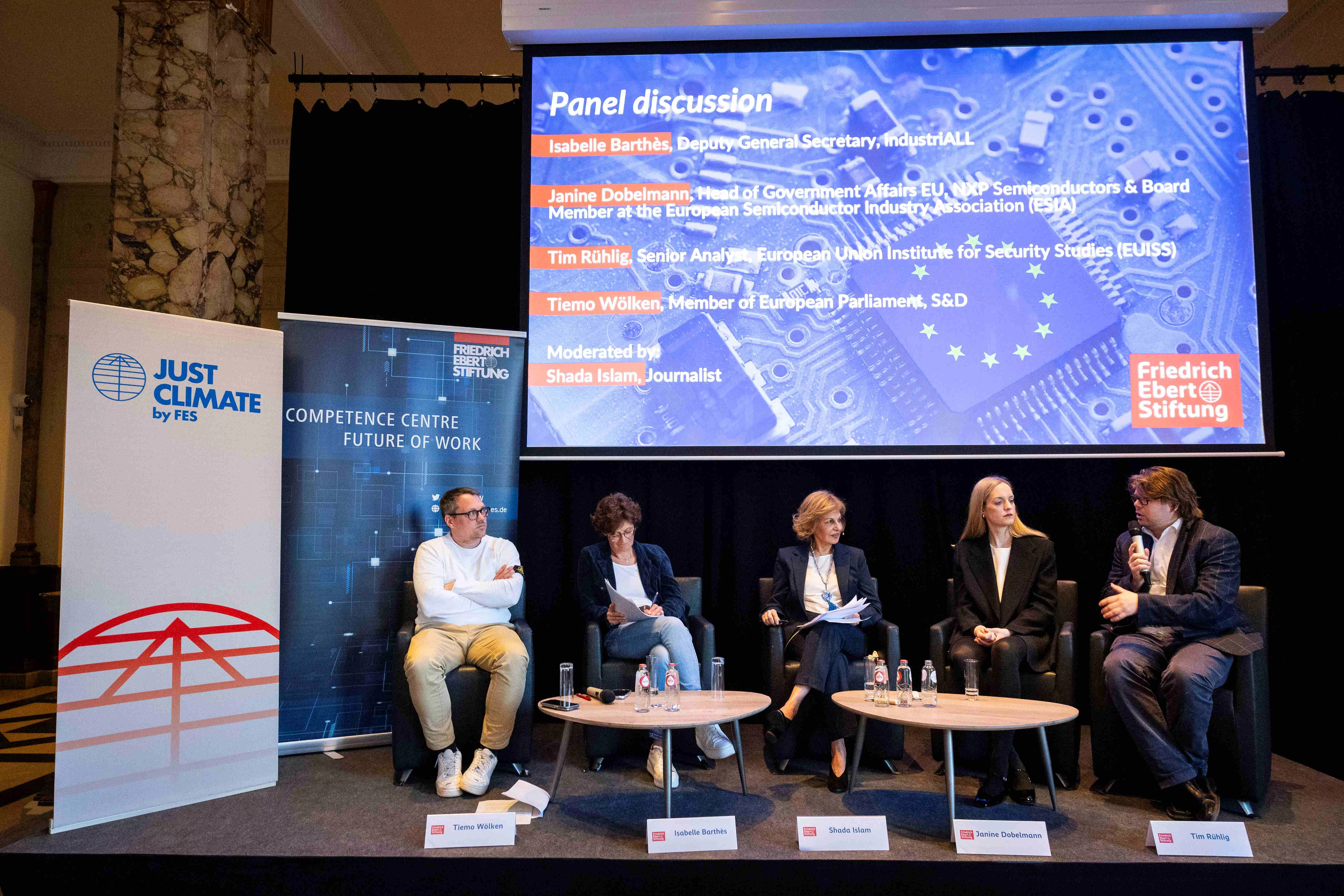 Brussels, 09 April 2025 - Evening panel discussion on Chips, Industrial Autonomy and Clean Tech by FES Future of Work & FES Just Climate.
